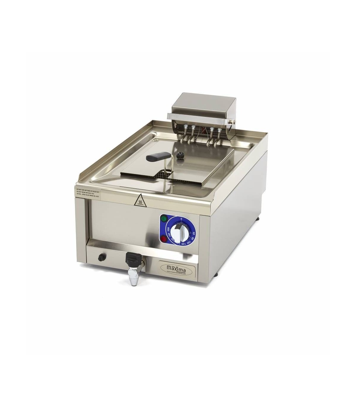 Această friteuză electrică profesională este un accesoriu puternic pentru orice hotel și afacere de catering. Este extrem de potrivită pentru o utilizare intensivă zilnică. În plus, această friteuză poate fi utilizată de-a lungul unei linii de gătit sau chiar să o extindem noi cu un dulap din oțel inoxidabil de calitate comercială. Are o tijă de conectare, astfel încât să o puteți atașa cu ușurință la alte aparate de bucătărie, iar rezervorul din oțel inoxidabil este sudat fără sudură. Se mândrește cu o capacitate de 10 litri pentru a prăji porții mari de gustări, cartofi prăjiți, legume, pește și alte produse.