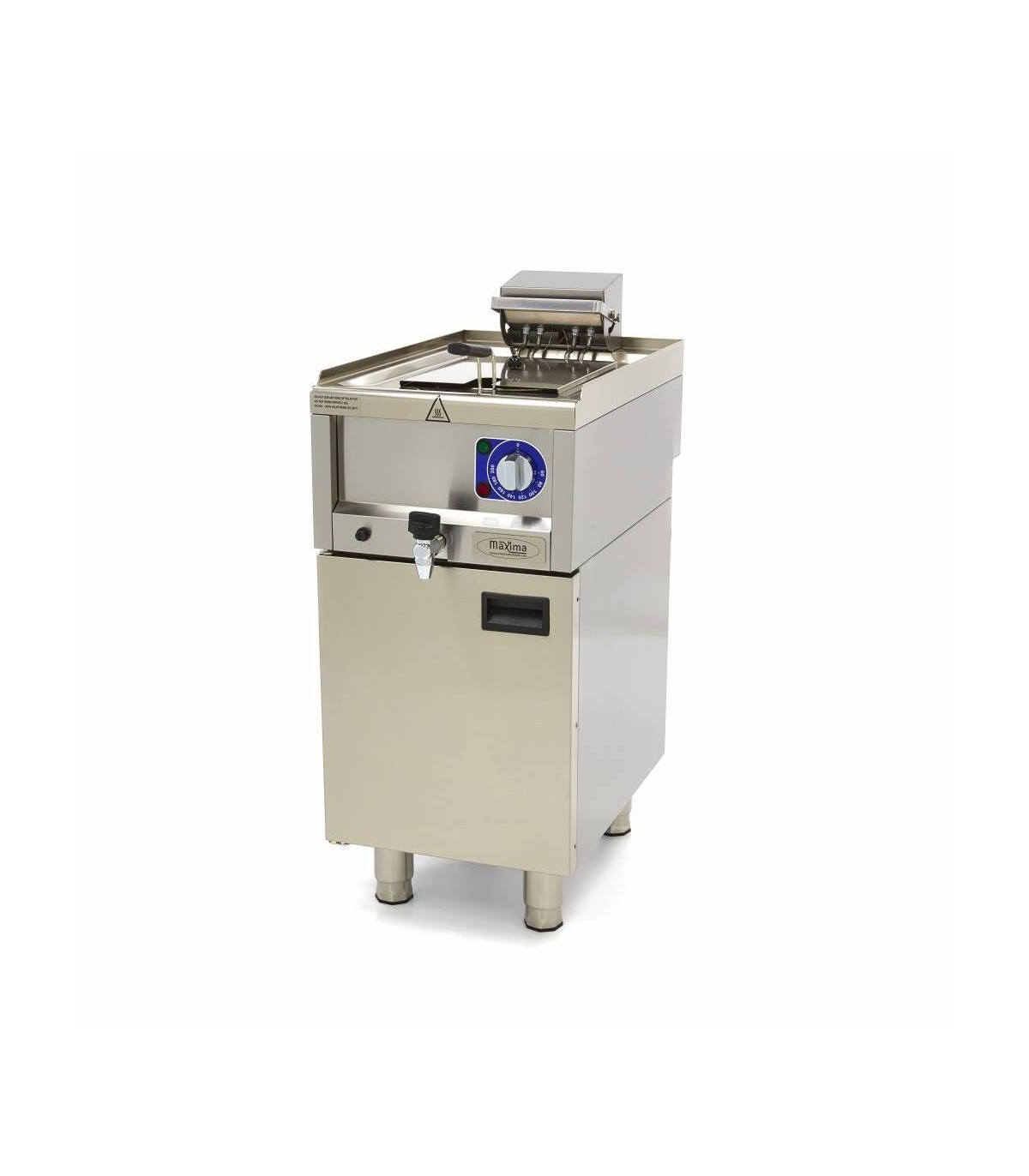 Robinetul de scurgere face ca schimbarea uleiului vechi să fie sigură și ușoară. Prăjitoarea este prevăzută cu un coș de prăjire mare pentru fiecare rezervor și un capac detașabil pentru a preveni stropirile de ulei. Mânerele sunt rezistente la căldură, iar picioarele pot fi ajustate la înălțimea necesară. Produsele pot fi, de asemenea, prăjite la temperaturi diferite pentru cele mai bune rezultate. Cu ajutorul termostatului, puteți seta cu ușurință o temperatură între 0°C și 190°C. Această friteuză profesională funcționează la o tensiune de 400V.